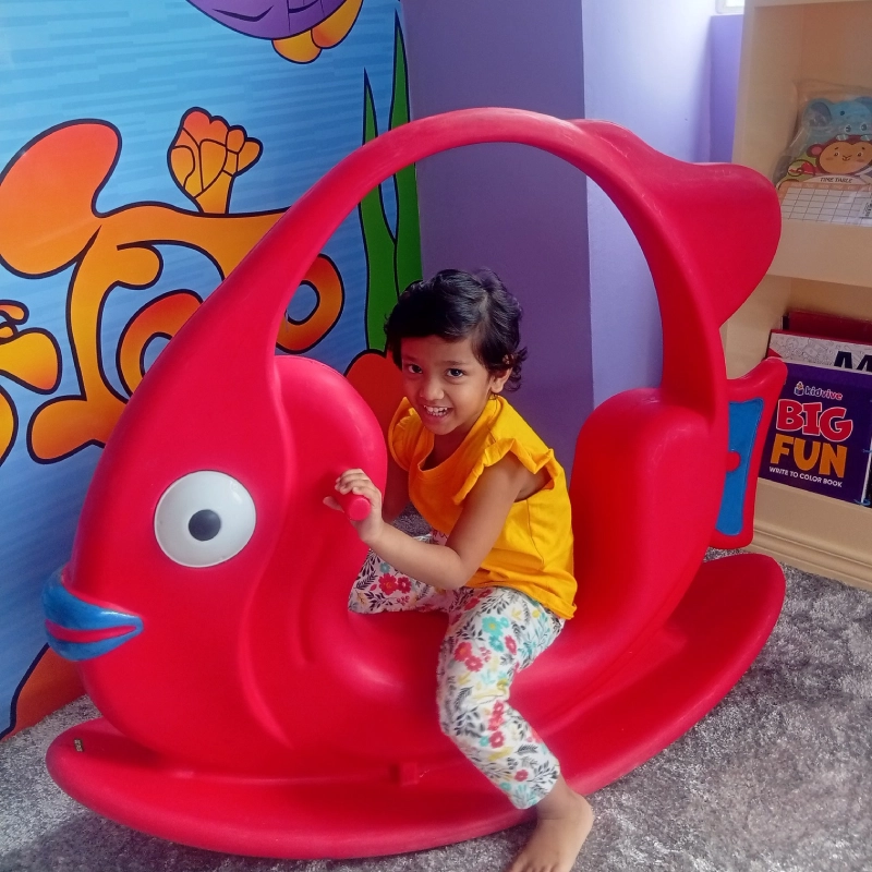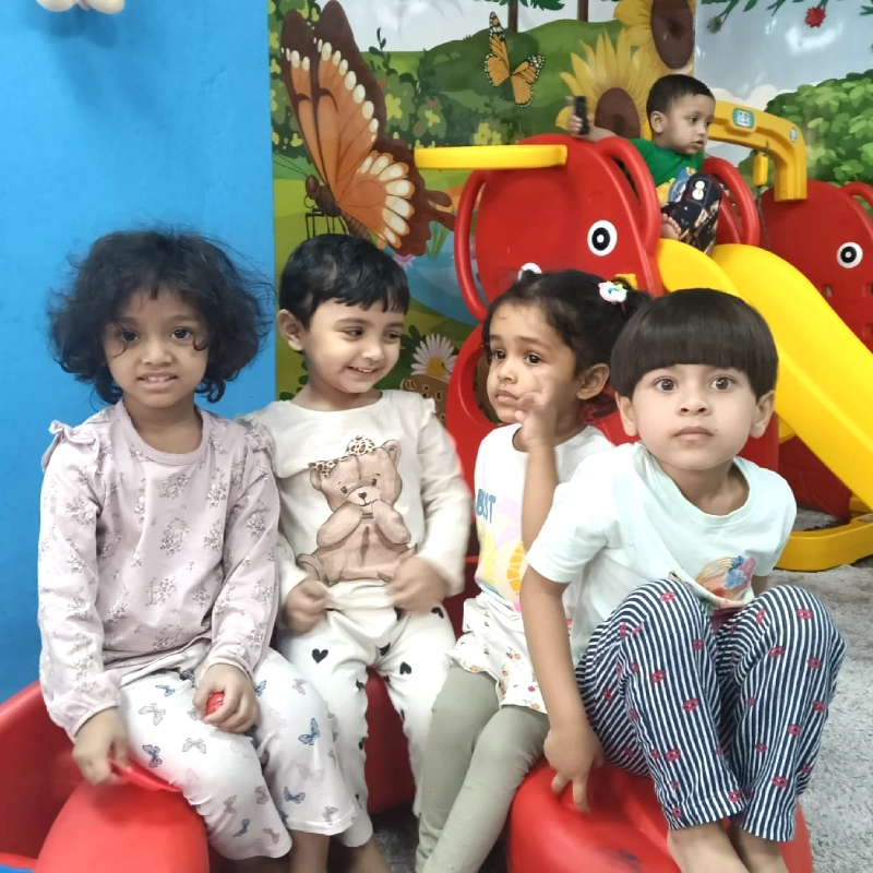 Infants explore textures and sounds, toddlers experiment with colours and shapes, while schoolers practice pre-writing, phonics and collaborative projects.